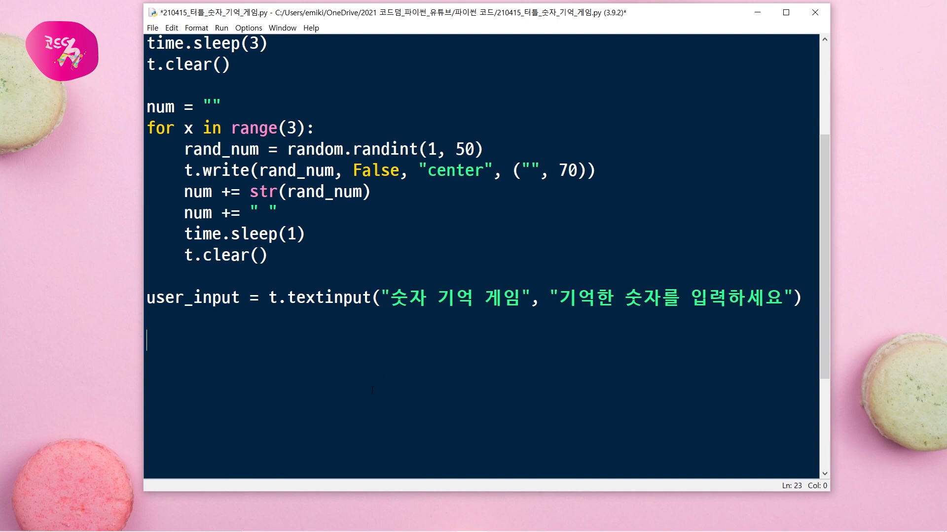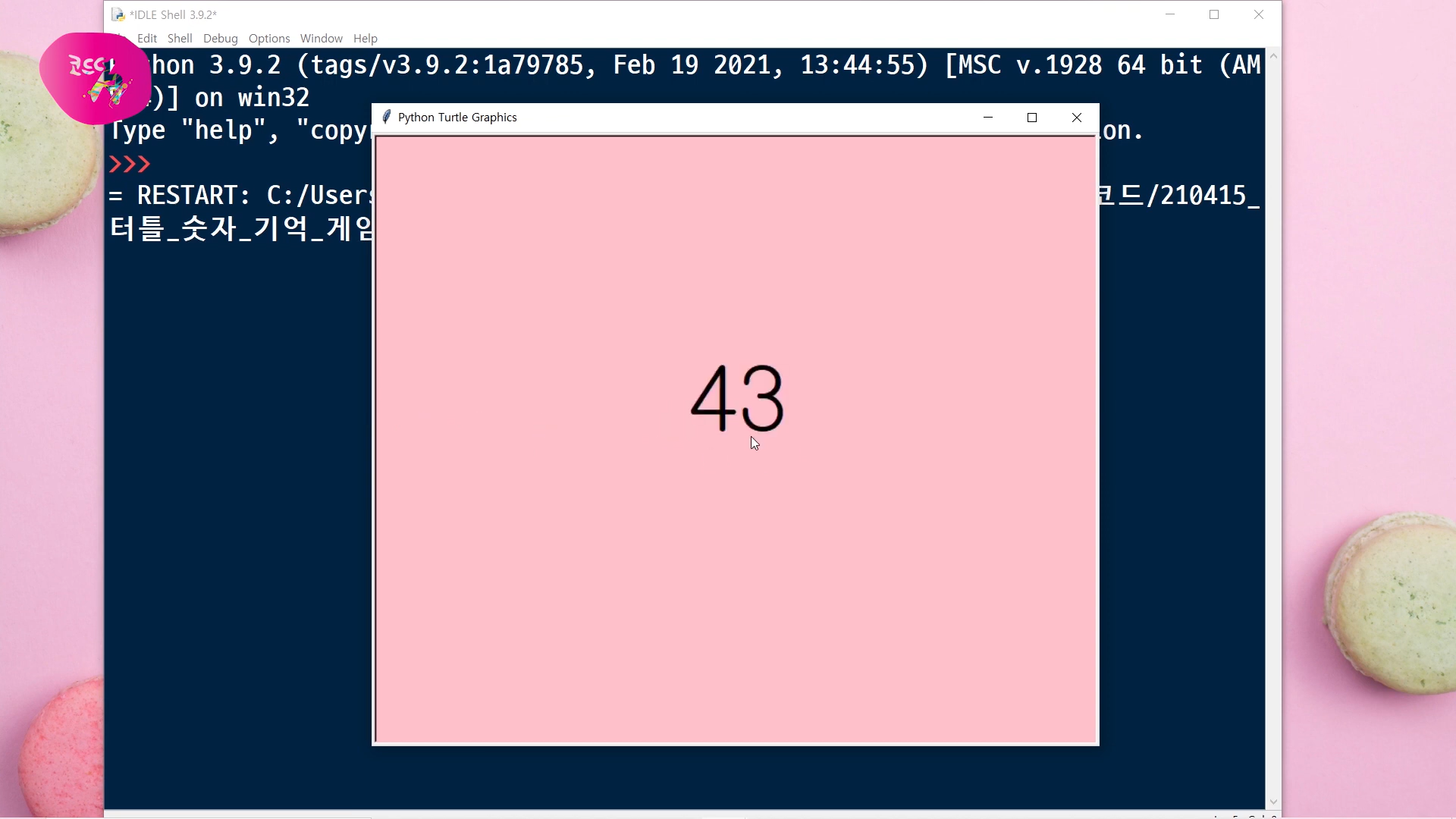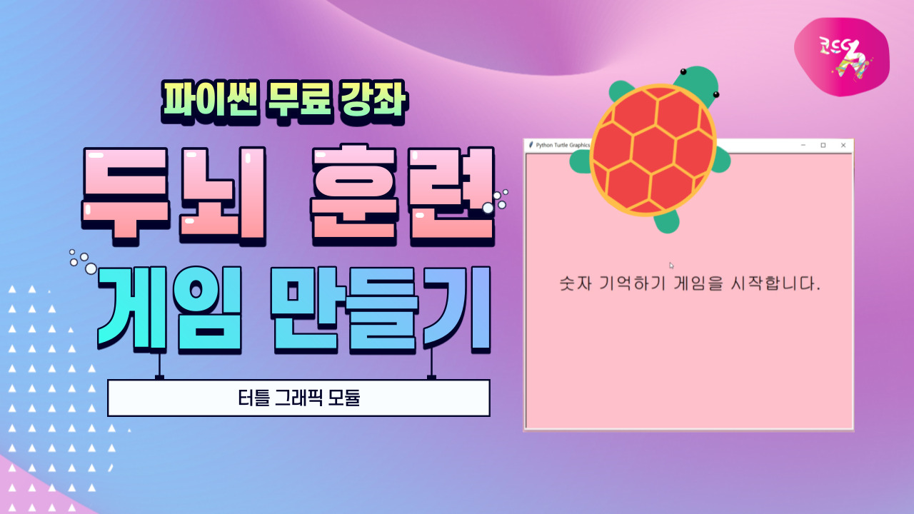 이번 시간에는 파이썬에서 제공하는 터틀 그래픽 모듈을 사용해서, 숫자 기억 게임을 만들어 볼 거예요.