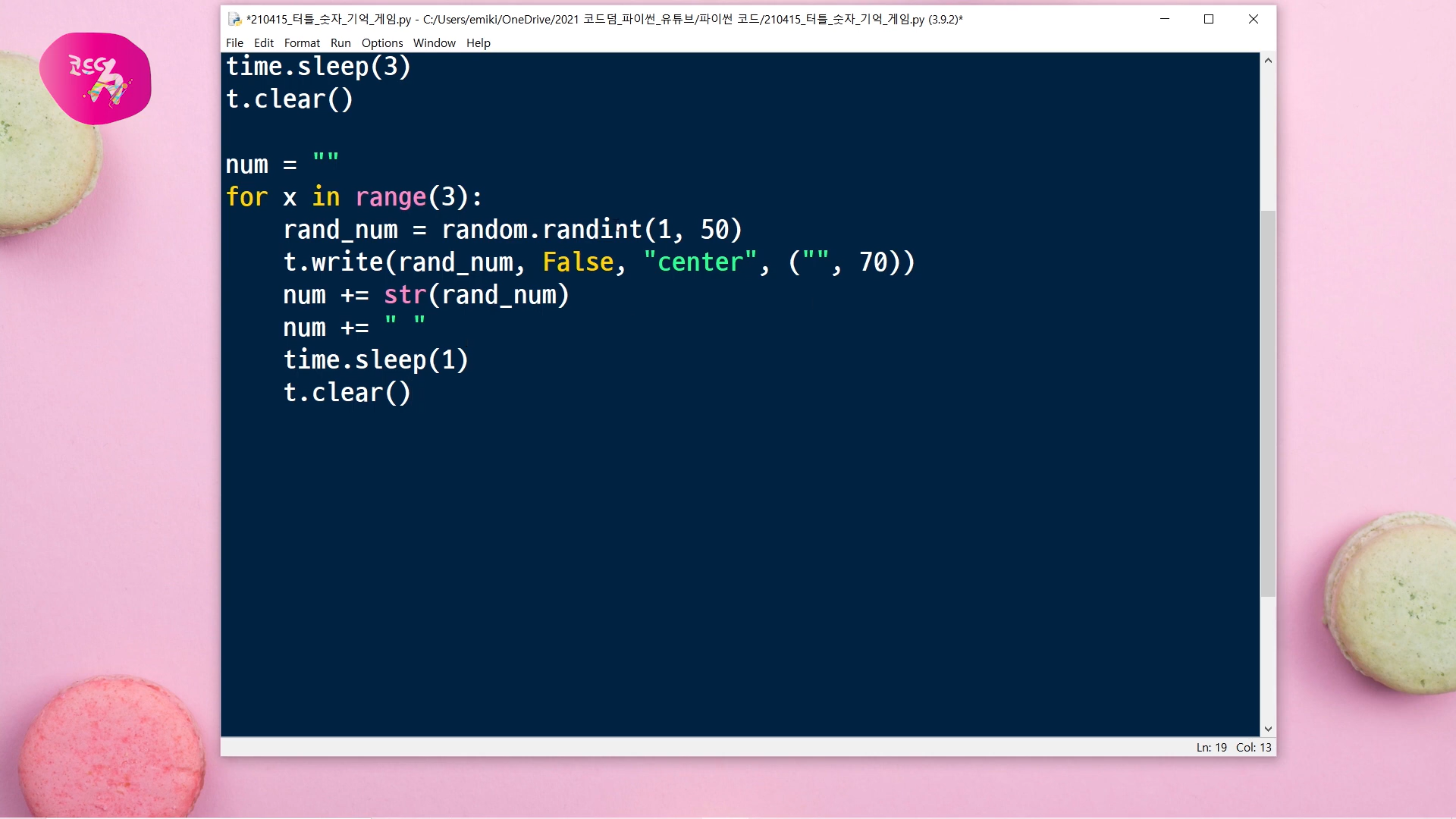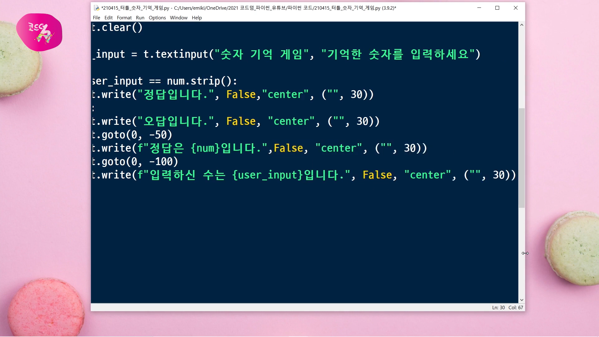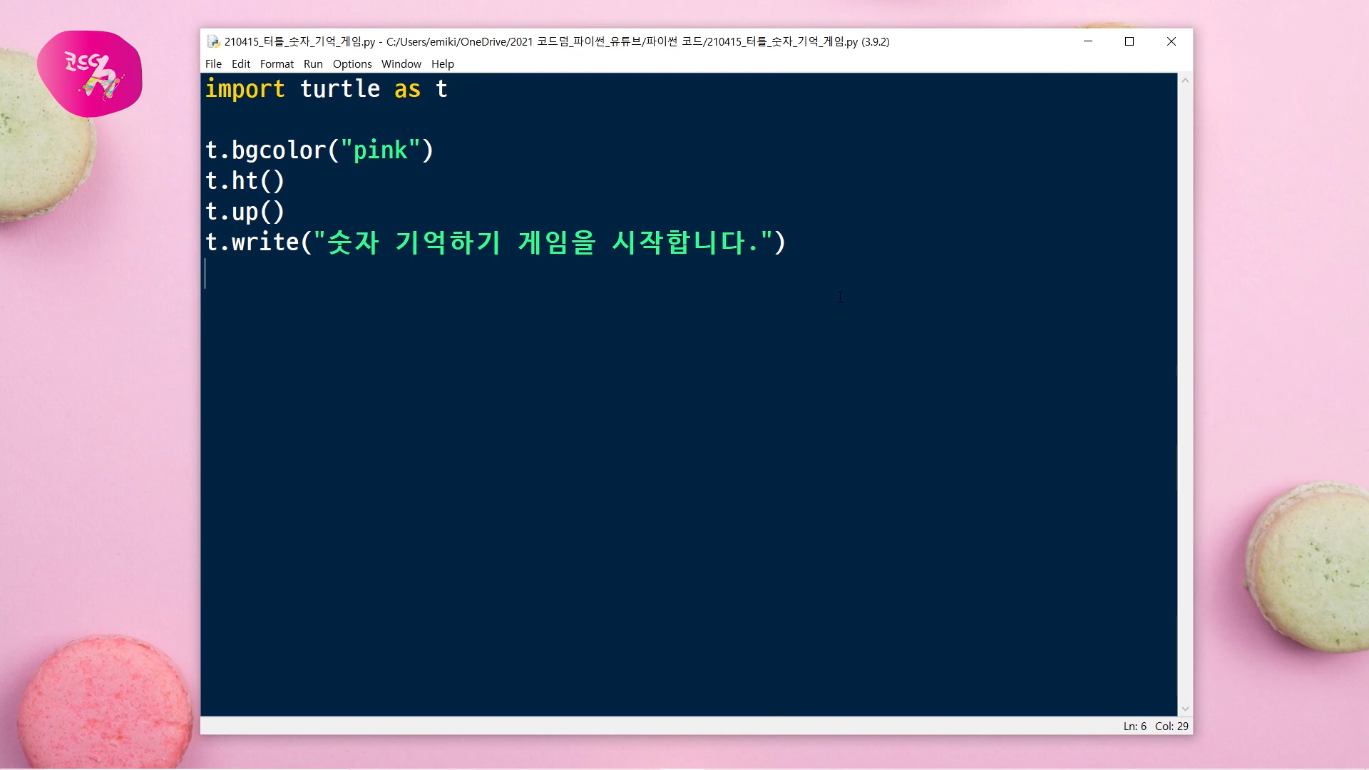 이번 시간에는 파이썬에서 제공하는 터틀 그래픽 모듈을 사용해서, 숫자 기억 게임을 만들어 볼 거예요.