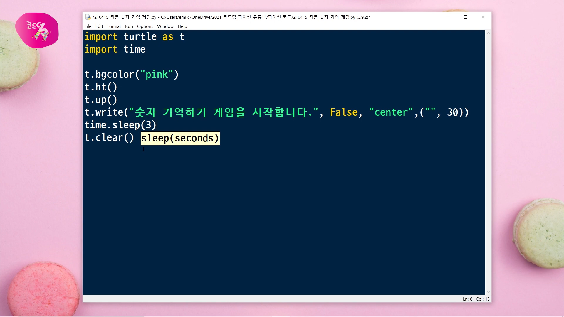 그래서 잠시 시간 지연을 주기 위해서 time모듈을 불러올 거예요.