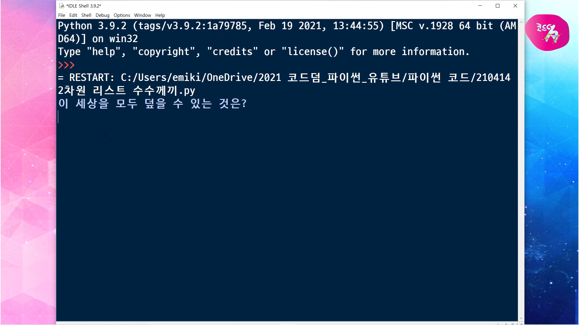 2차원 리스트에 대한 간단한 설명과, 퀴즈 프로그램에 대한 코드는 아래 영상을 통해서 확인해 주세요~