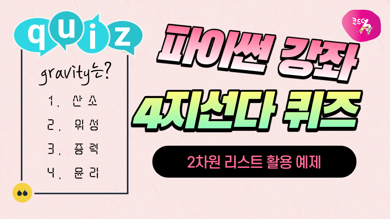 2차원 리스트와, 최종 코드에 대한 자세한 설명은 아래 영상을 참고해 주세요.