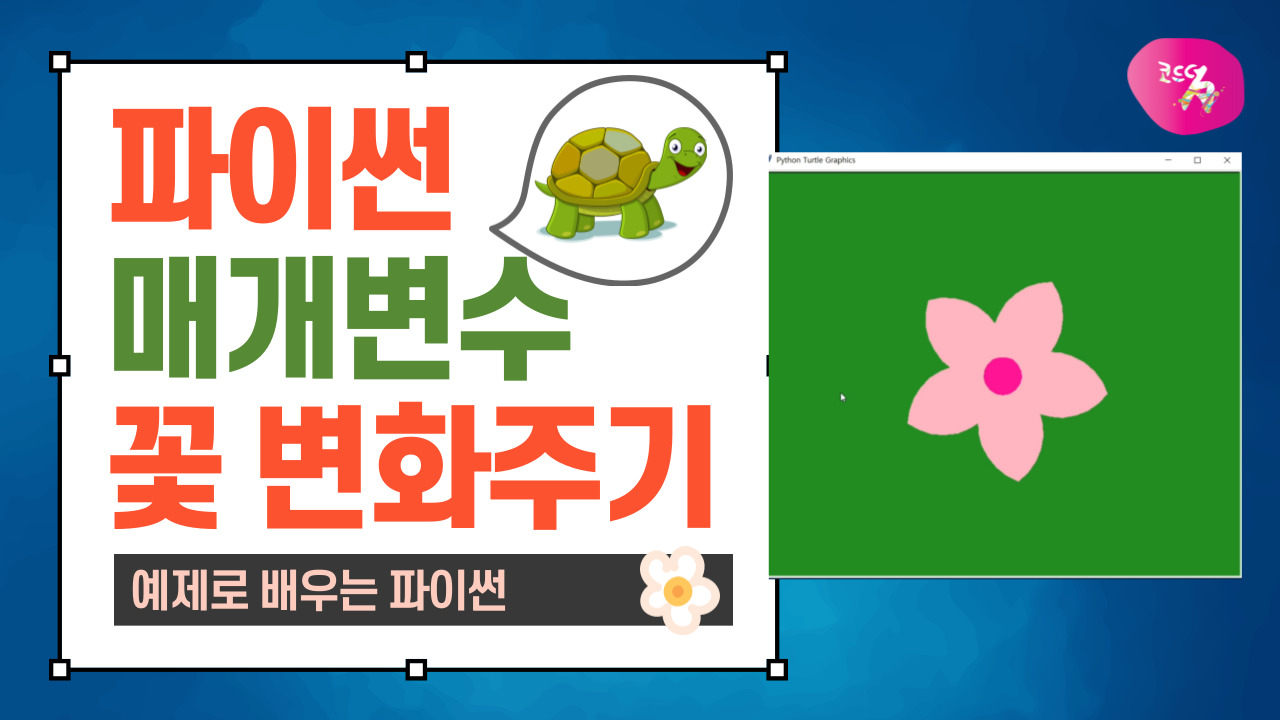 이전 파이썬 기초 35강에서 거북이 그래픽 모듈로 꽃잎을 표현하는 방법에 대해 알아보았는데요.