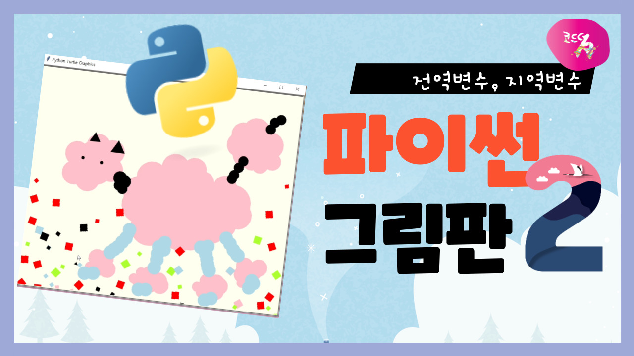 이번 파이썬 강좌에서는 파이썬에서 제공하는 터틀 그래픽 모듈을 활용해 간단한 그림판을 만들어 볼 거예요.