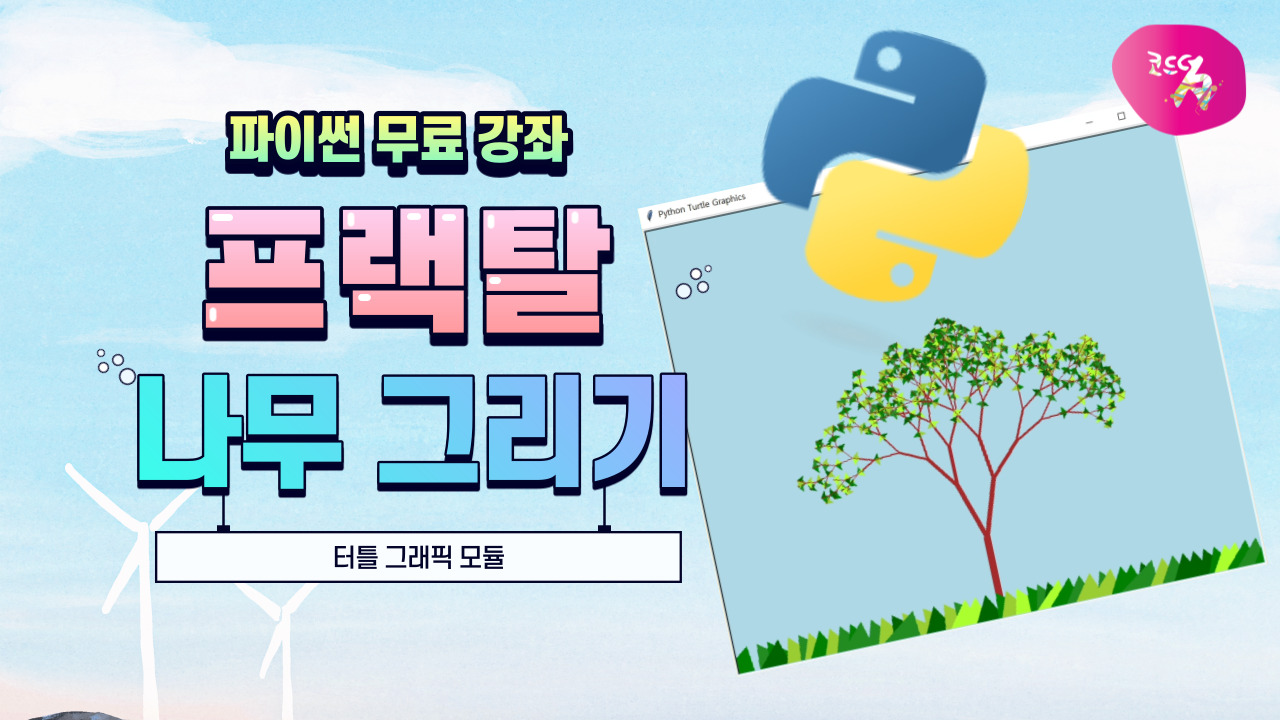 이번 파이썬 강좌에서는 터틀 그래픽 모듈로 나무를 그려볼 거예요.