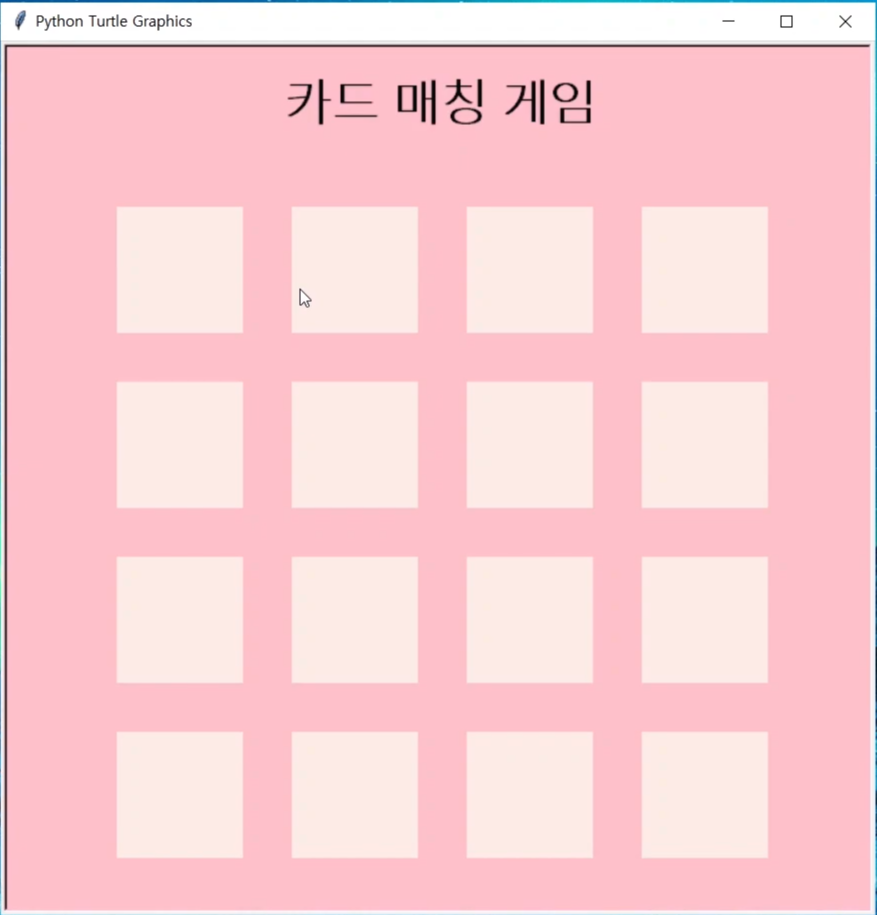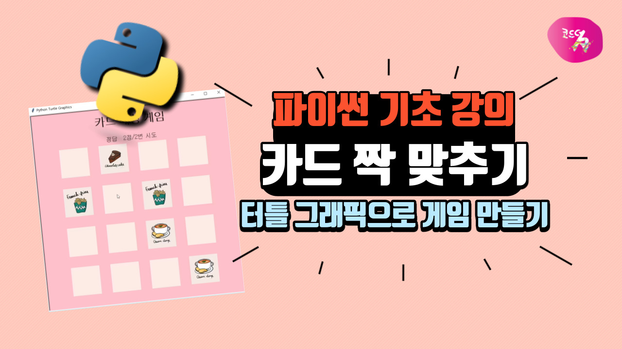 이번 파이썬 기초 강좌에서는 카드 짝을 맞추는 게임을 만들어 보겠습니다~