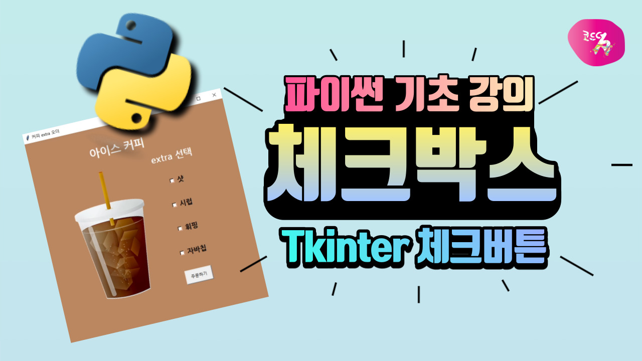 이번 파이썬 강의에서는 커피 주문 시스템 중, extra 주문을 넣는 방법을 tkinter의 체크버튼을 사용해서 만들어 볼 거랍니다.