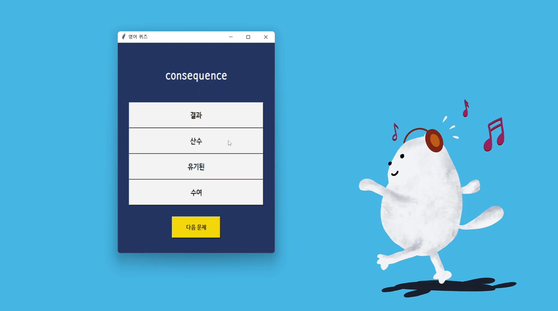 오늘 파이썬 Tkinter로 만들어 볼 예제 프로그램은 영어 퀴즈 프로그램이에요.