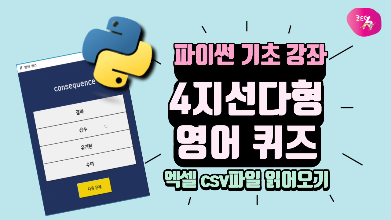 함께 파이썬으로 영어 퀴즈 게임을 만들어 보시고, 실제 영어 공부에 활용해 보세요!!