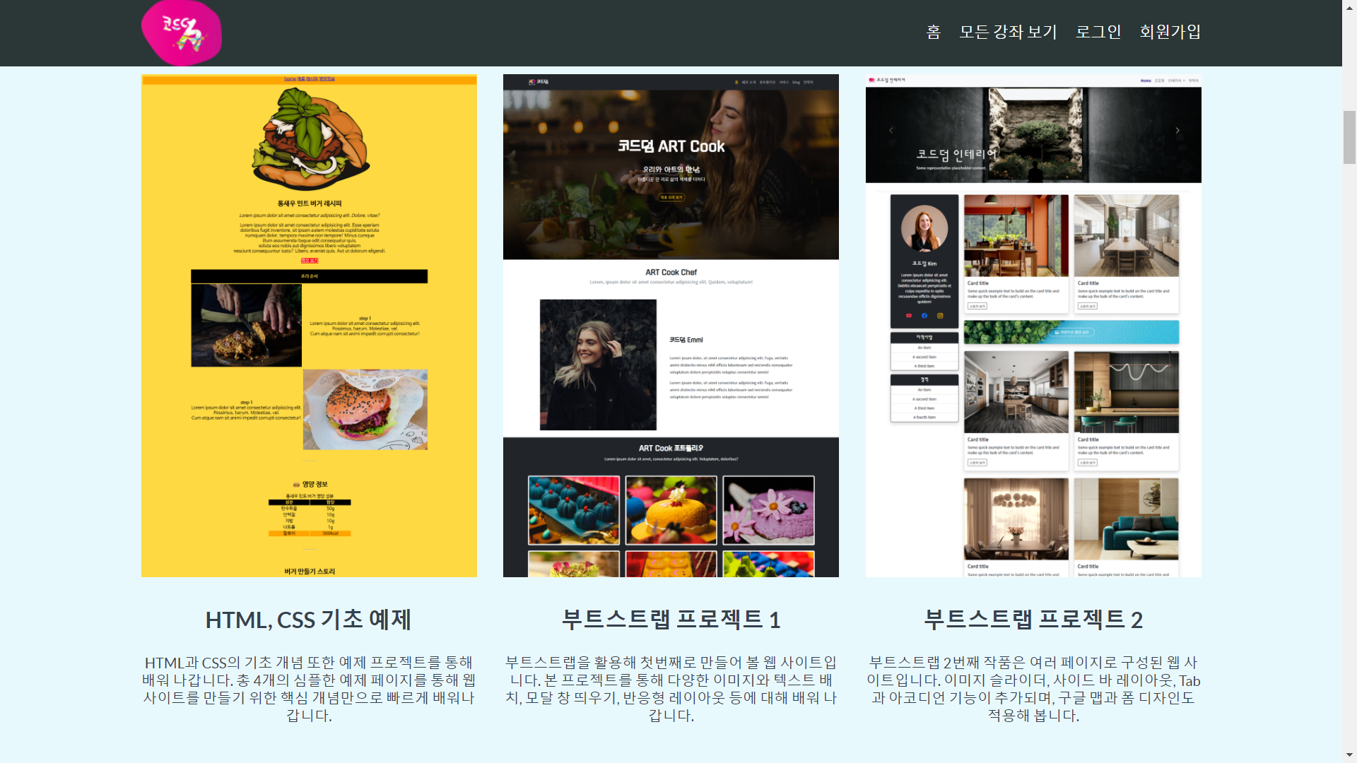 현재 HTML, CSS, 부트스트랩 개념 강의까지 오픈되어 바로 수강하실 수 있습니다.