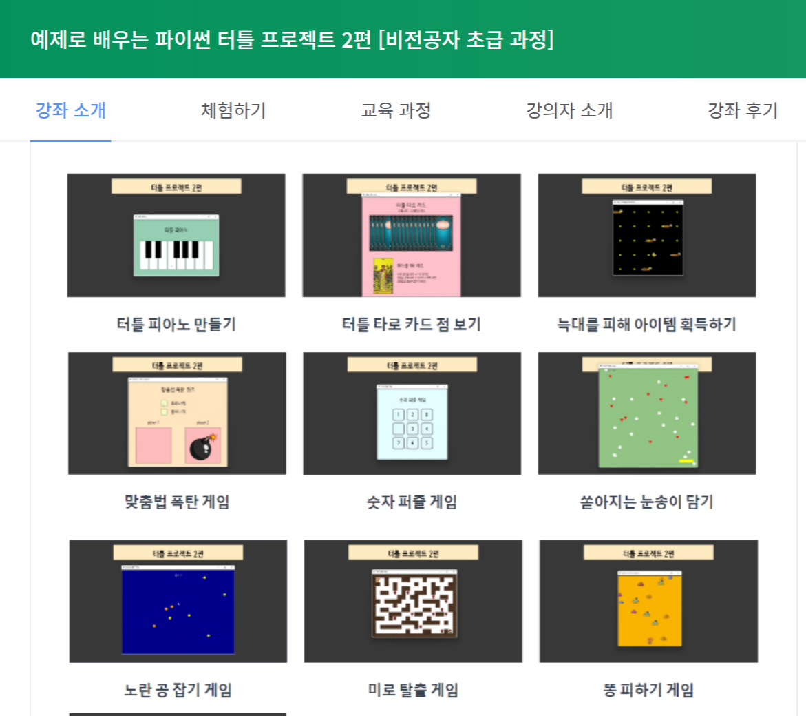 파이썬 터틀 프로젝트 강좌를 오픈하였습니다.