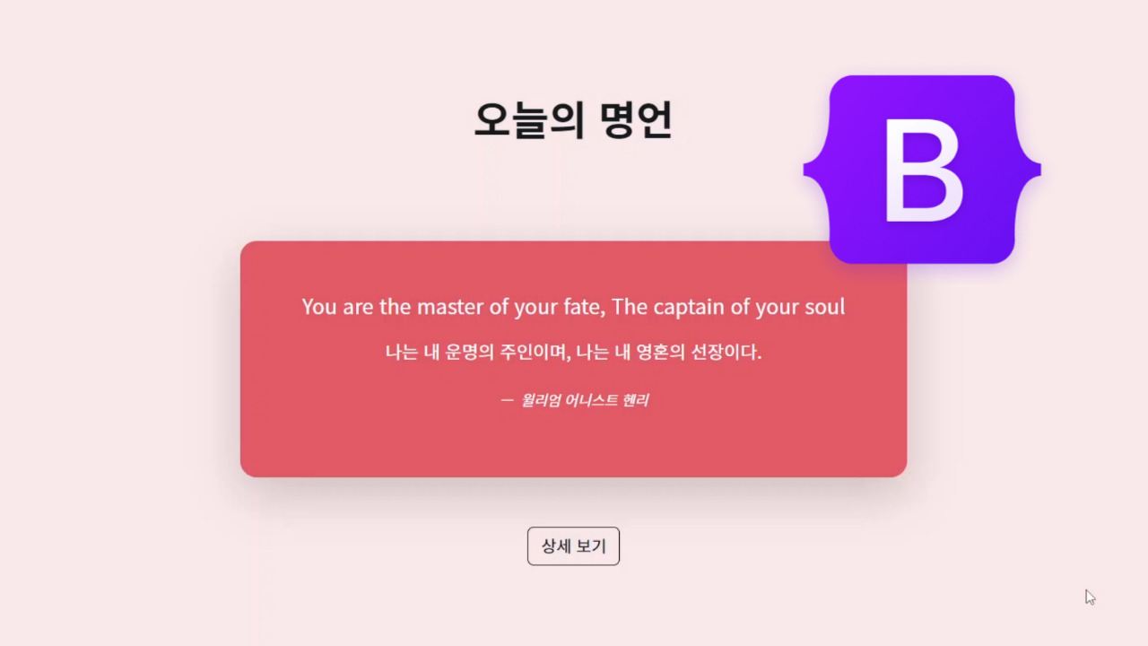 부트스트랩 기본 코드를 가져오는 방법부터, 부트스트랩의 blockquote 클래스와 blockquote-footer 클래스로 인용 문구의 스타일을 적용하는 방법, 카드 모양을 잡아주고, 부트스트랩의 배경 색상에 투명도를 적용하는 방법까지 알아볼 거예요.