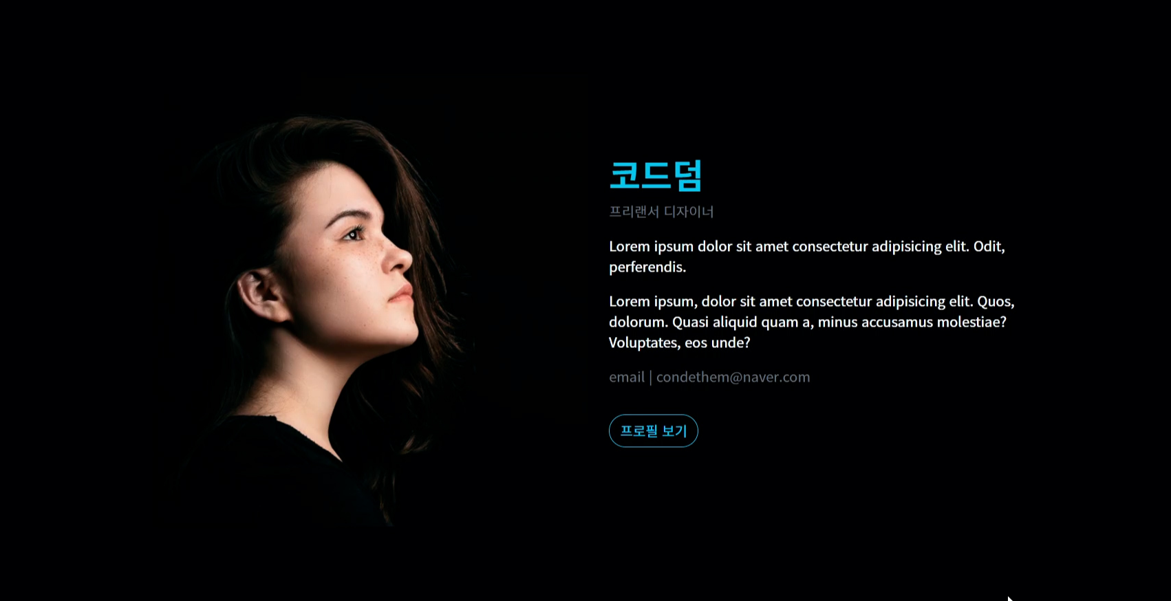 왼쪽으로 사진이 배치되어 있죠. 그리고 오른쪽으로 프로필에 대한 세부 사항이 배치되어 있는데요.