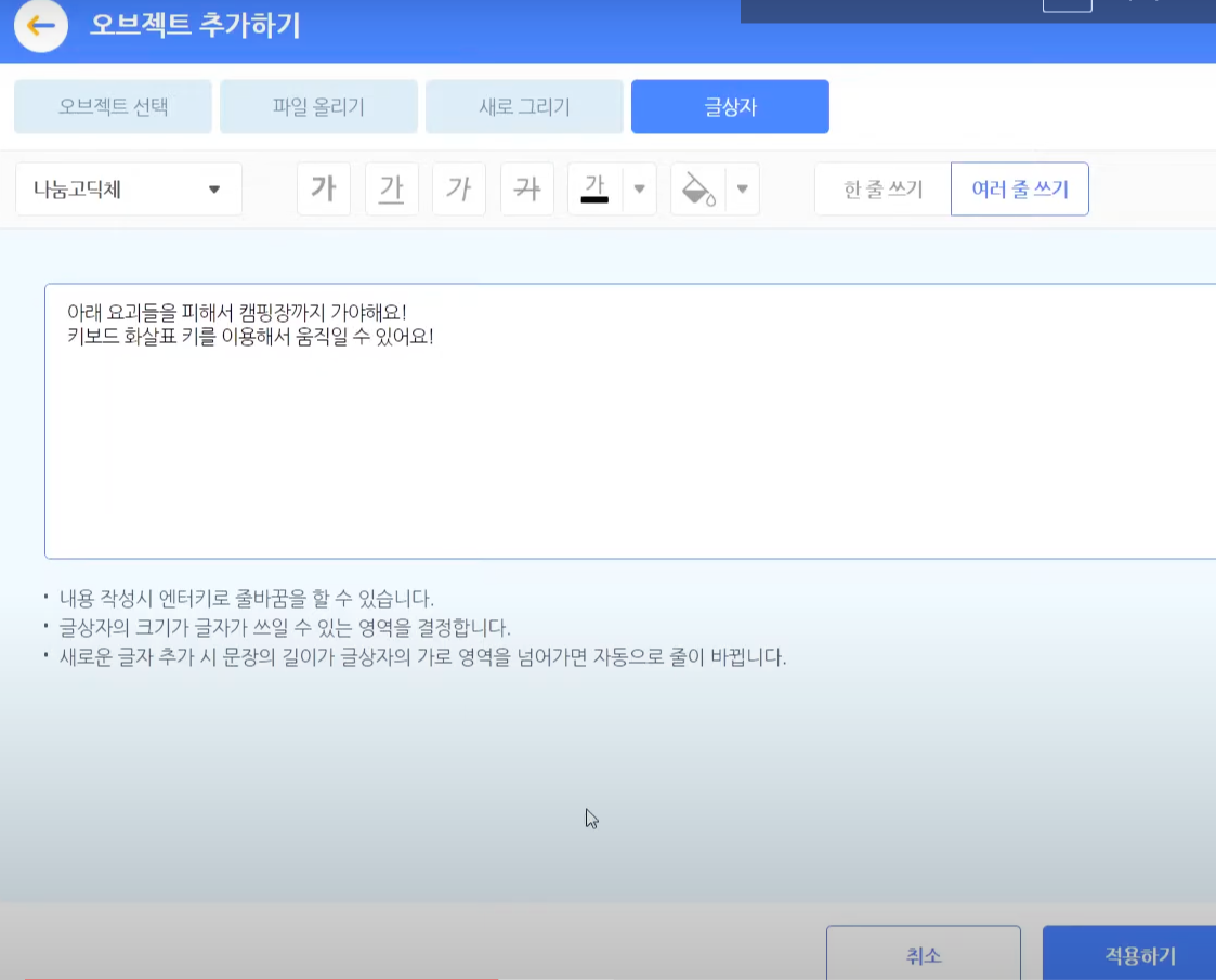 이 글상자에 대한 자세한 편집은 "글상자" 탭에서 해 줄 수 있어요~