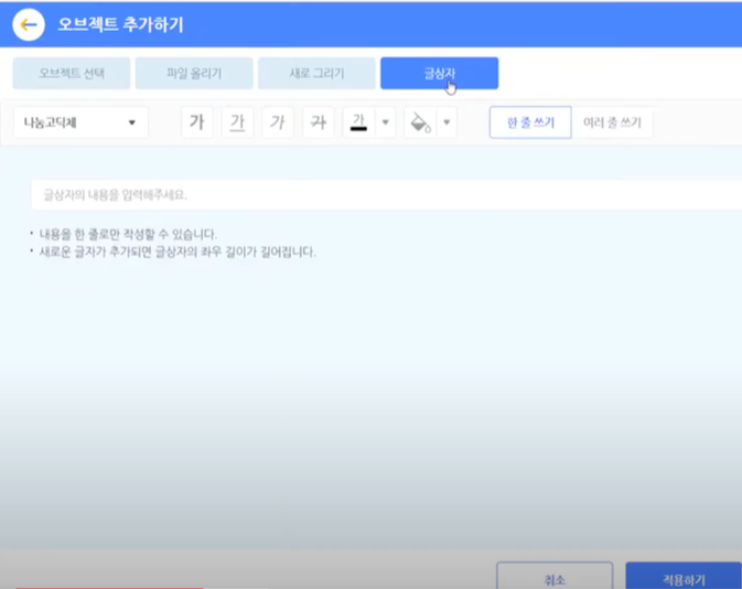 먼저 오브젝트 추가하기로 이동하시면, 아래와 같이 "글상자"라는 탭이 있답니다.