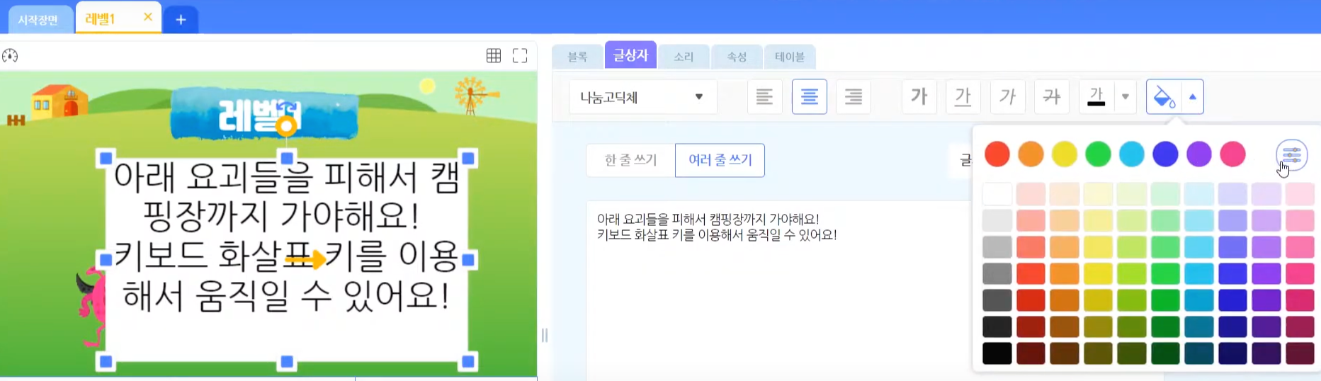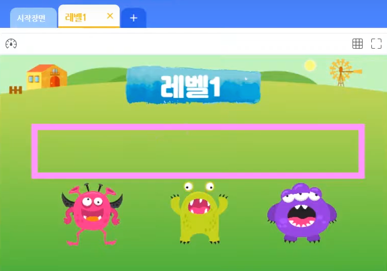 그리고 저 분홍색 란에, 레벨 1단계를 플레이하는 방법에 대해 간단히 설명을 해 줄 거예요.