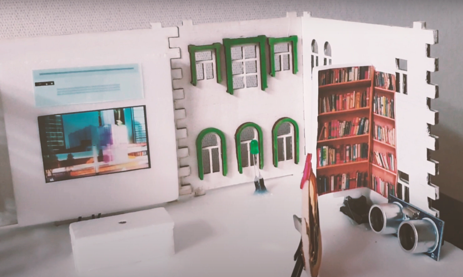 초음파 센서가 감지해서, 책장 문을 열어준답니다.