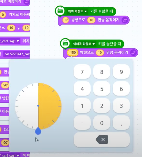 이번 시간에는 자동차가 키보드의 방향키를 눌러 자동차가 이동하도록 코딩을 해줄 거랍니다.