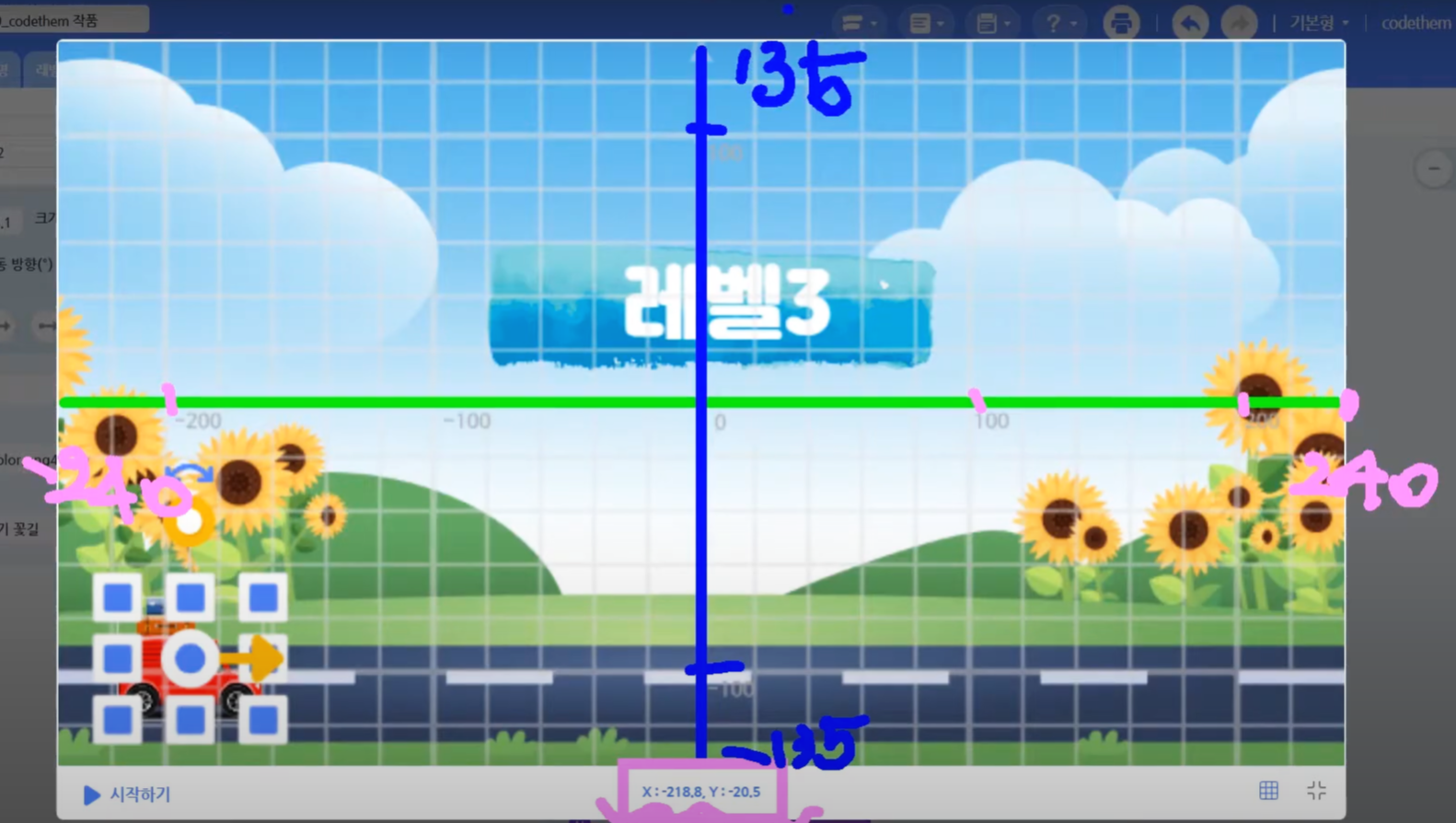 자동차를 왼쪽 오른쪽으로 이동시키려면, x좌표를 사용할 수 있어요~