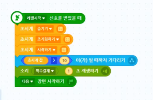 그리고 10초가 초과하면, 박수소리를 재생해 주고, 다음 장면으로 전환해 줄게요.