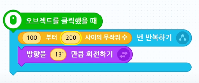 회전하기 블록에 회전 각도를 정했다면, 이제 반복하기 블록을 가지고 와서,