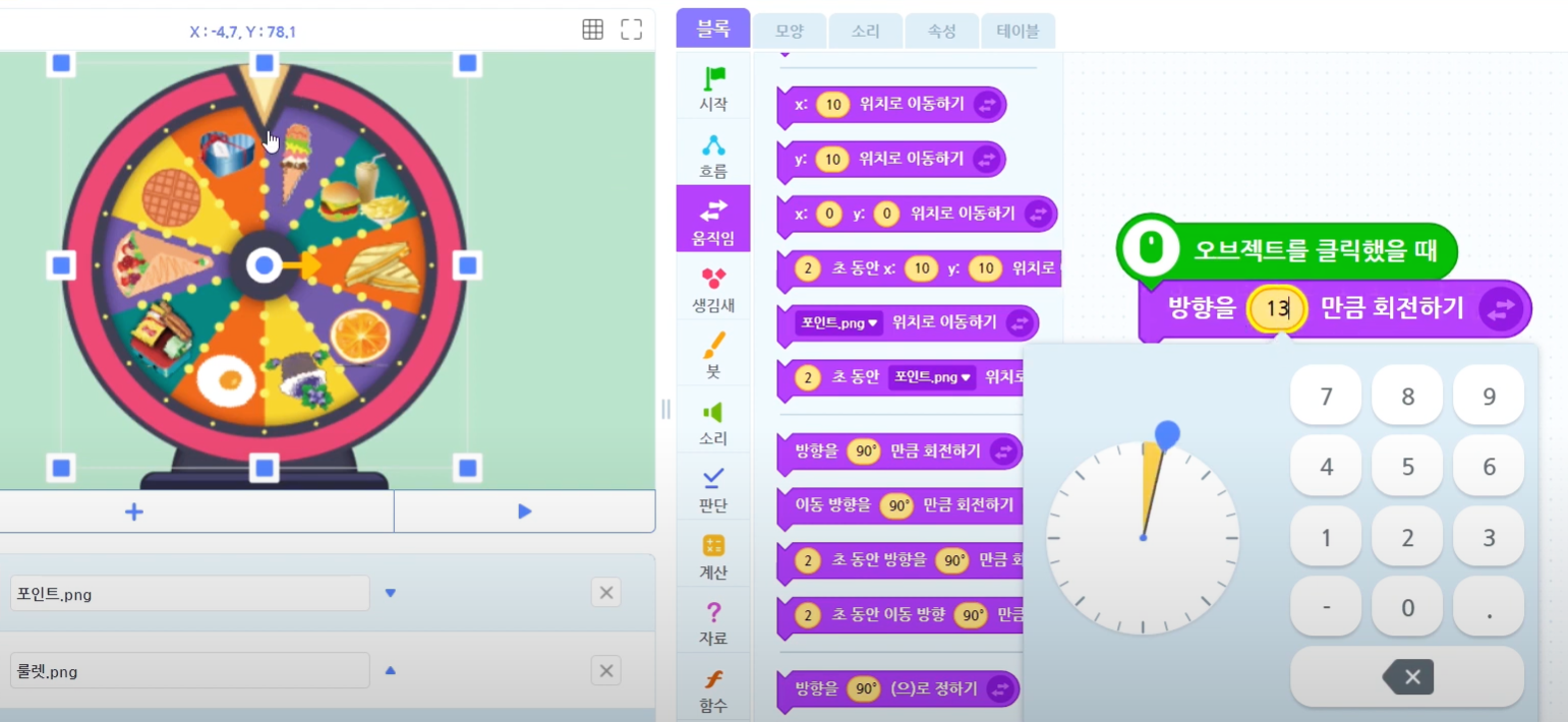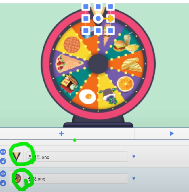 저희는 이 룰렛판을 클릭해서 회전을 시킬거에요.