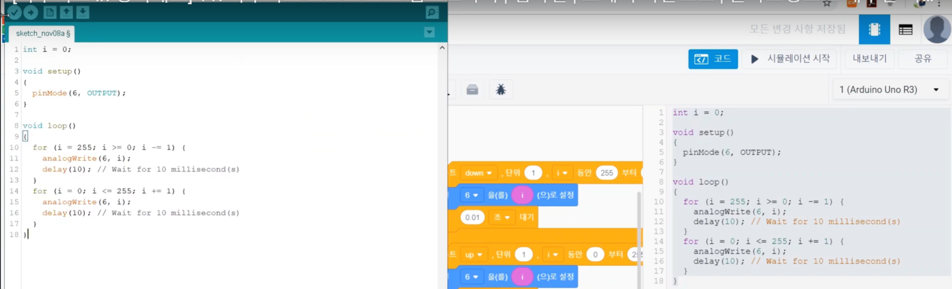 | [아두이노 기초 강좌 7강] for 반복문으로 코드를 간단하게 | LED 점차적으로 켜고 끄기 (0) | 2020.11.12 |
