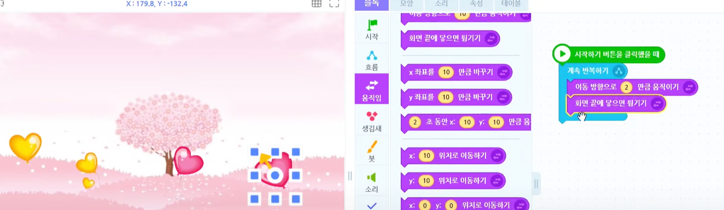 풍선은 이동방향을 사용해서 코딩을 해줄게요.
