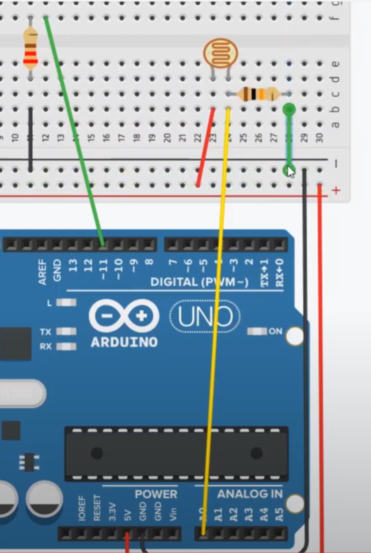 조도센서는 빛이 많이 들어올 경우 저항이 낮아진다고 했죠.