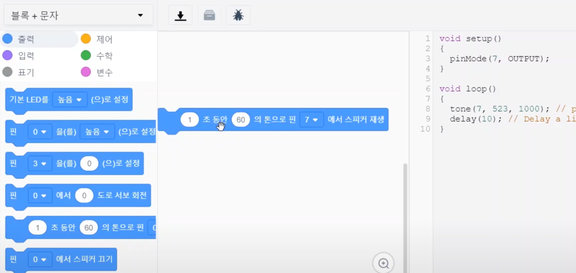 [출력] 카테고리에 가시면, 아래와 같이 스피커 출력 블록이 있답니다.