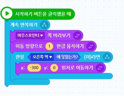 지난 구름 코딩편에서는 "x좌표"를 사용해서 왼쪽 끝으로 다시 이동시켜주었는데요.