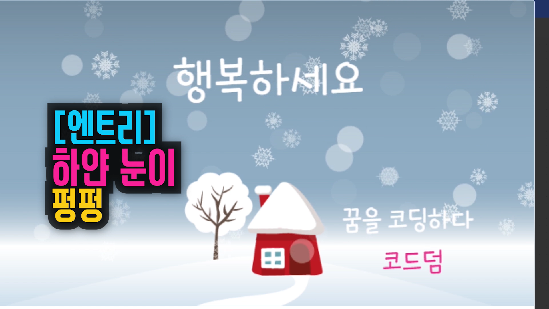 이제 코딩이 다 끝났다면, 아래 영상으로 눈이 내리는 모습을 확인해 보세요~