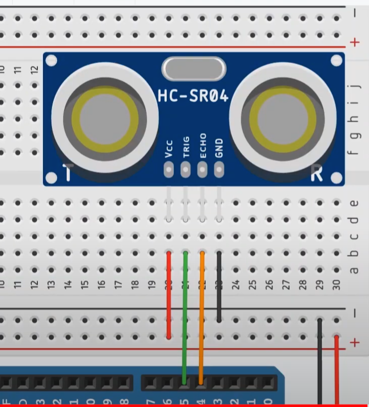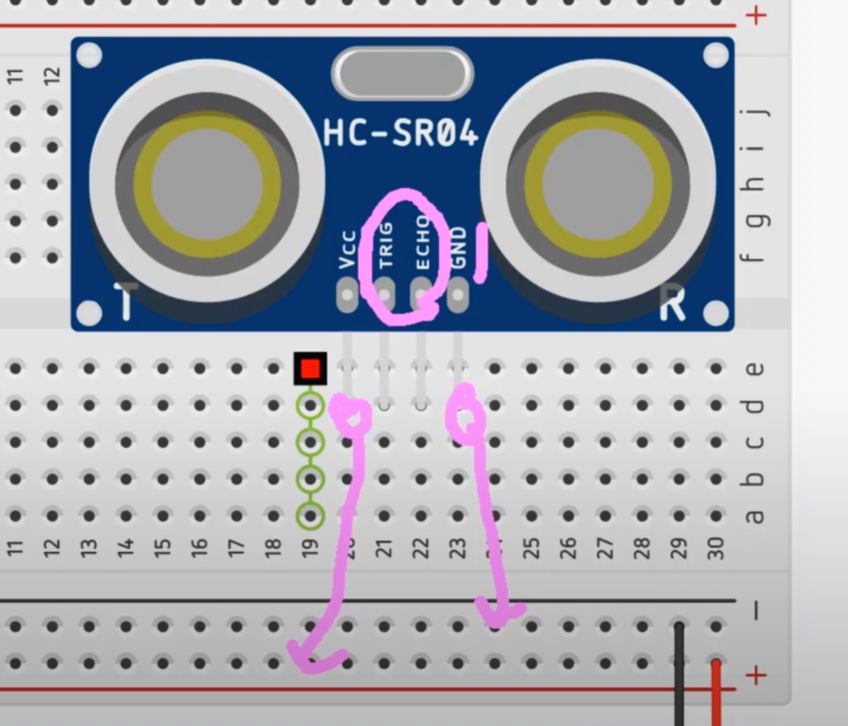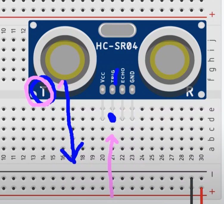 이 핀이 Trig핀과 연결되어 있어요. Trig 핀에 전기가 공급되면, 이 곳에서 초음파가 발사됩니다.