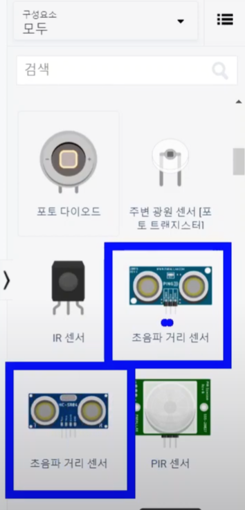 팅커캐드에서 초음파 센서로 검색을 하시면, 2가지 타입이 있어요.