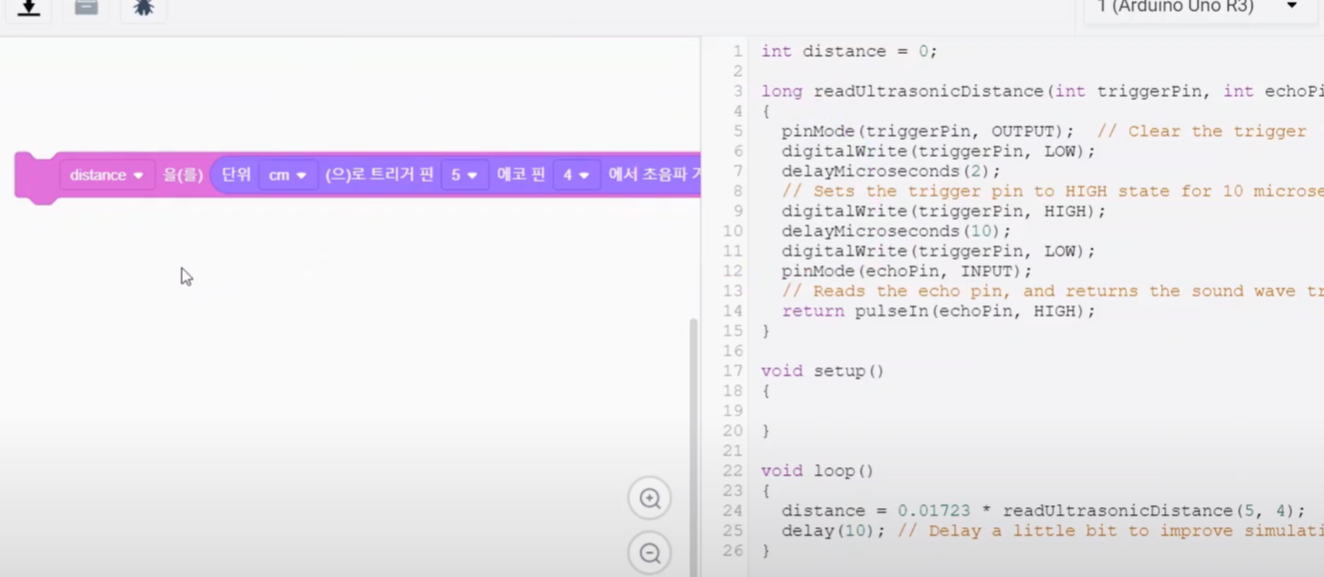 초음파 센서는 거리 값을 읽어 들이기 때문에 [ 입력] 카테고리에 가시면