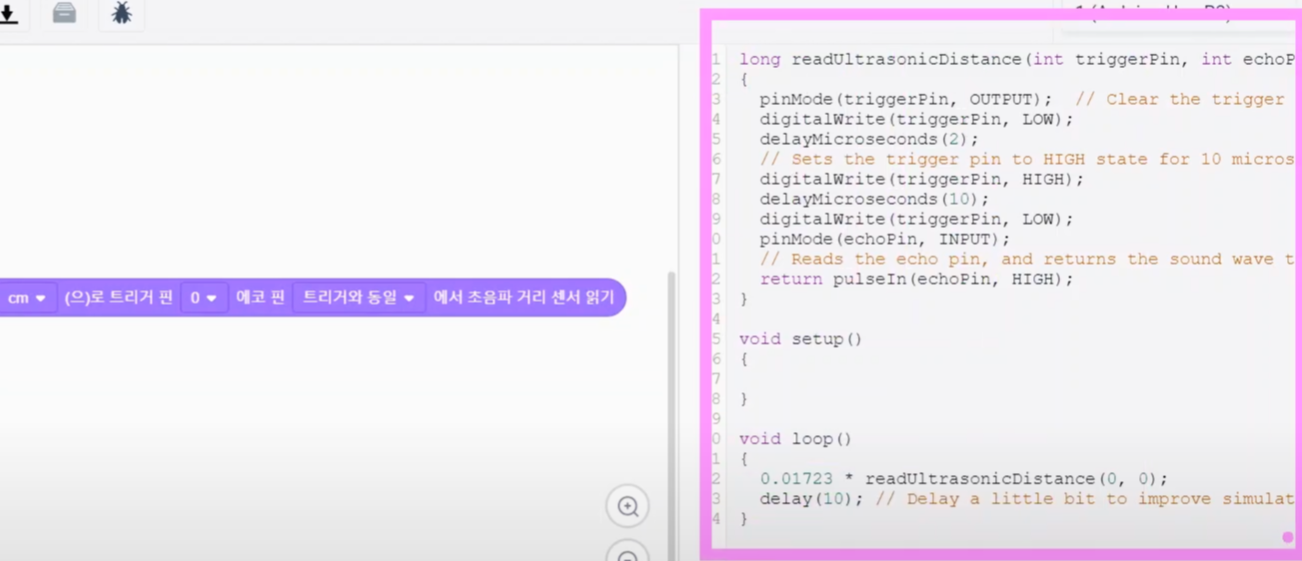 그리고 가운데, Trig핀과 Echo핀은 모두 디지털 핀으로 연결을 해 줄 거랍니다.